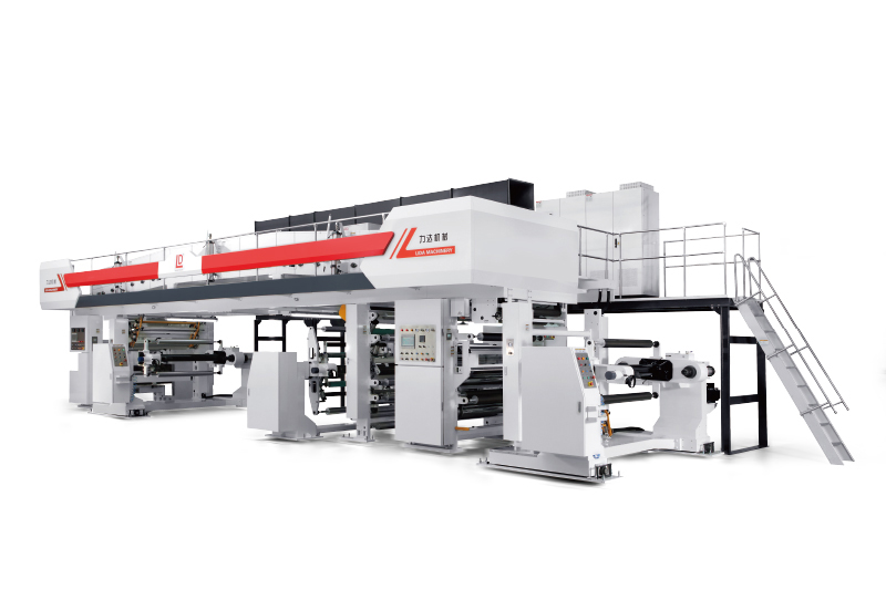 力達(dá)印刷包裝機(jī)械廠家生產(chǎn)的多功能復(fù)合涂布機(jī)背印采用凹版印刷機(jī)。...